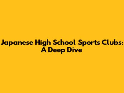 Japanese High School Sports Clubs: A Deep Dive