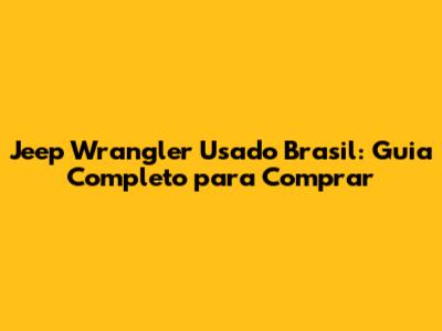 Jeep Wrangler Usado Brasil: Guia Completo Para Comprar