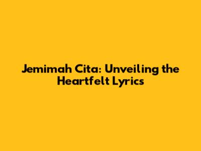 Jemimah Cita: Unveiling The Heartfelt Lyrics