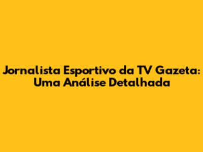 Jornalista Esportivo Da TV Gazeta: Uma Análise Detalhada