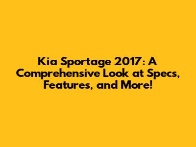 Kia Sportage 2017: Specs, Features & More!