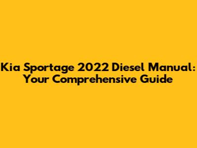 Kia Sportage 2022 Diesel Manual: Your Detailed Guide