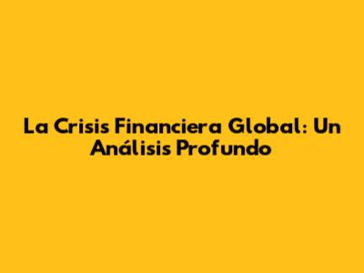 La Crisis Financiera Global: Causas, Impactos Y Soluciones