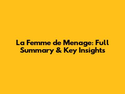 La Femme De Menage: Full Summary & Key Insights