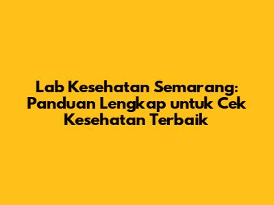 Lab Kesehatan Semarang: Panduan Lengkap Untuk Cek Kesehatan Terbaik