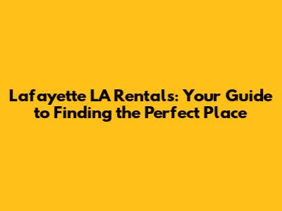 Lafayette LA Rentals: Your Guide To Finding The Perfect Place