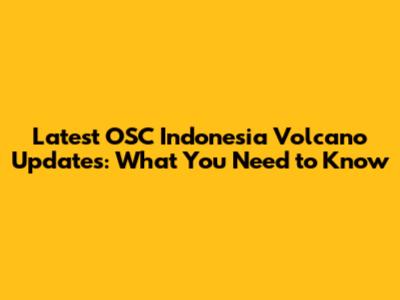 Latest OSC Indonesia Volcano Updates: What You Need To Know