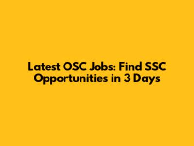 Latest OSC Jobs: Find SSC Opportunities In 3 Days
