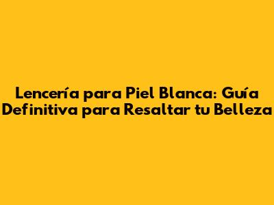 Lencería Para Piel Blanca: Guía Completa Para Lucir Espectacular
