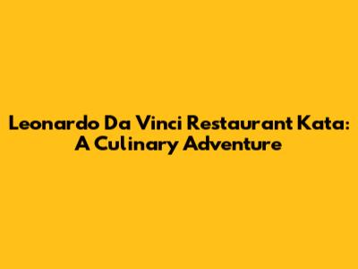 Leonardo Da Vinci Restaurant Kata: A Culinary Adventure
