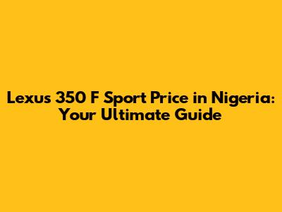 Lexus 350 F Sport Price In Nigeria: A Comprehensive Guide