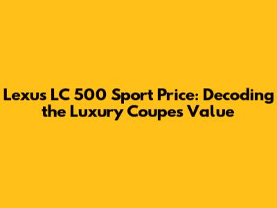 Alright, gearheads, let's dive into the world of the Lexus LC 500 Sport! If you're eyeing this stunning coupe, you're probably wondering about one thing: the price. Let's break down the Lexus LC 500 Sport price, explore its features, and see what makes it a worthy contender in the luxury sports car arena. This isn't just about numbers, folks; it's about understanding what you get for your hard-earned cash. We'll explore the various aspects that influence the final price tag, from the base model to the fully loaded versions. So, buckle up, and let's unravel the mysteries of the LC 500 Sport's price.