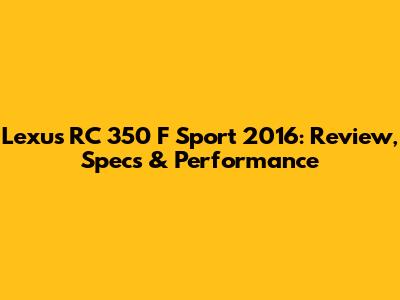 Lexus RC 350 F Sport 2016: Review, Specs & Performance
