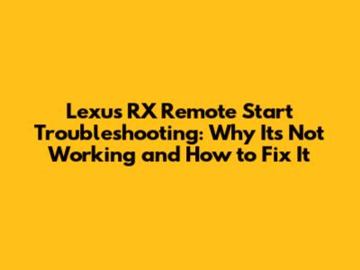 Lexus RX Remote Start Issues: Troubleshooting Guide