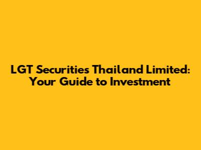 LGT Securities Thailand Limited: Your Guide To Investment