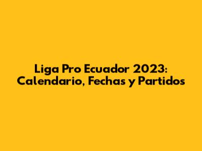 Liga Pro Ecuador 2023: Calendario, Fechas Y Partidos