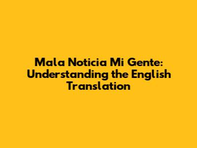 Mala Noticia Mi Gente: Understanding The English Translation