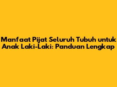Hai, guys! Pernahkah kalian terpikir untuk memberikan pijat seluruh tubuh untuk si kecil? Mungkin beberapa dari kalian masih asing dengan ide ini, tapi percaya deh, pijat seluruh tubuh untuk anak laki-laki punya segudang manfaat yang luar biasa! Artikel ini akan membahas tuntas tentang manfaat pijat, teknik pijat yang aman, serta tips memilih terapis pijat yang tepat. Yuk, simak!