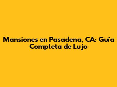 Mansiones En Pasadena, CA: Guía Completa De Lujo