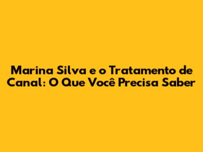 Marina Silva: Entenda O Tratamento De Canal Passo A Passo