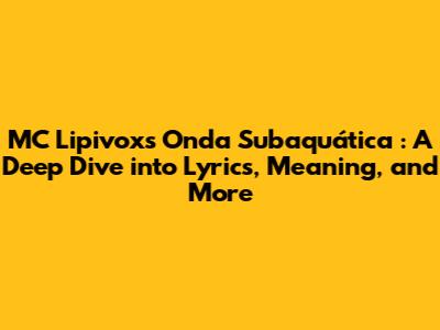 Hey music lovers! Ever gotten completely lost in a song, vibing with every beat and word? Well, today, we're diving deep into just such a track: Onda Subaquática by the one and only MC Lipivox. This song isn't just a catchy tune; it's a whole experience, a journey into sound and emotion. So, grab your headphones, and let's get started. We're going to break down the lyrics, explore the meaning behind them, and give you the full scoop on this awesome track. Ready to explore the depths of Onda Subaquática? Let's go!