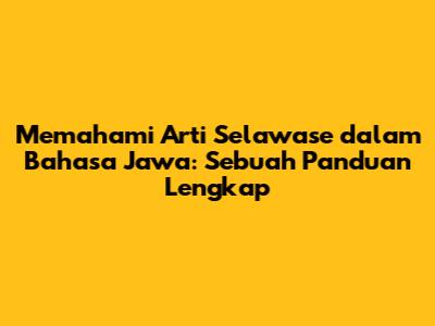 Memahami Arti Selawase Dalam Bahasa Jawa: Makna & Penggunaannya