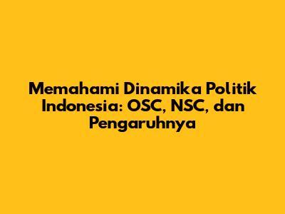 Guys, mari kita selami dunia politik Indonesia yang menarik. Kita akan membahas tentang beberapa istilah penting seperti OSC (Organisasi Siswa Intra Sekolah), NSC (National Supervisory Committee), dan bagaimana mereka semua berinteraksi dalam lanskap politik Indonesia yang dinamis. Persiapkan diri Anda untuk perjalanan yang informatif dan semoga menyenangkan!