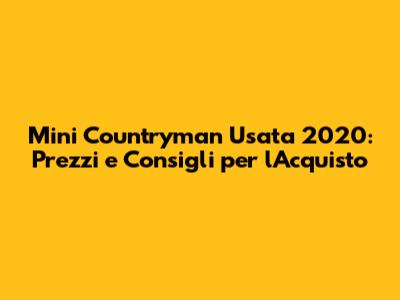Hey guys! Are you in the market for a stylish and versatile compact SUV? The Mini Countryman could be the perfect ride for you! And if you're looking to save some money, a used 2020 model is a fantastic option. But before you dive in, let's explore everything you need to know about the Mini Countryman usata 2020 prezzo, including what to expect in terms of cost, features, and things to consider before making a purchase. This guide will provide you with all the essential information to make a smart and informed decision.