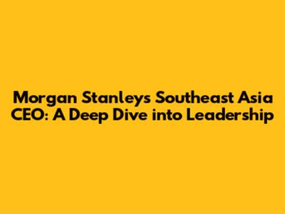 Hey guys! Ever wondered who's steering the ship at Morgan Stanley in Southeast Asia? Well, let's dive deep into the world of investment banking and explore the leadership landscape at one of the globe's financial giants. Understanding who the CEO is and their background can give you a real edge in understanding the company's strategic direction in this dynamic region. So, buckle up and let's get started!