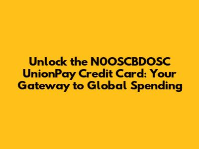 Hey guys! Ever wondered about getting your hands on a credit card that opens doors worldwide? Well, let's dive deep into the N0OSCBDOSC UnionPay credit card. This isn't just any card; it's your potential passport to seamless transactions across a vast network, especially if you find yourself frequently traveling or shopping in regions where UnionPay reigns supreme. We're going to break down what makes this card special, who it's best for, and how you can maximize its benefits. So grab your favorite drink, settle in, and let's explore the world of the N0OSCBDOSC UnionPay card!