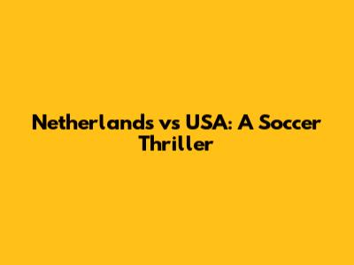 Netherlands Vs USA: Epic Soccer Showdown