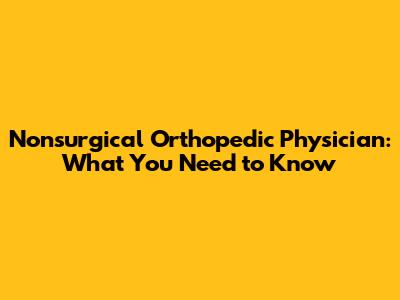 Nonsurgical Orthopedic Physician: What You Need To Know