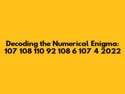 Numbers Game: Decoding 107 108 110 92 108 6 107 4 2022