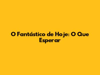 O Fantástico De Hoje: O Que Esperar