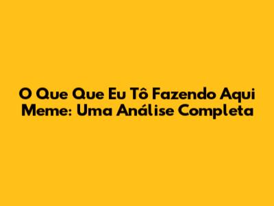 O Que Que Eu Tô Fazendo Aqui Meme: Uma Análise Completa