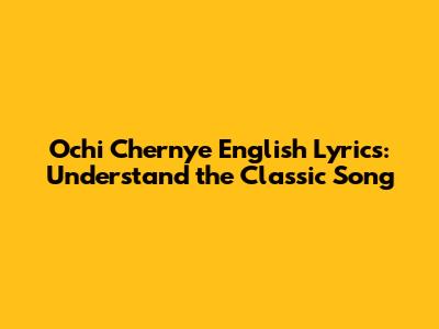 Ochi Chernye English Lyrics: Understand The Classic Song