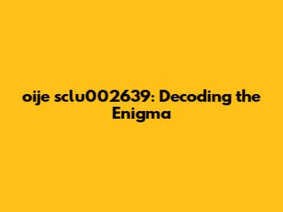 Oije Sclu002639: Decoding The Enigma