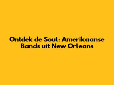 Ontdek De Soul: Amerikaanse Bands Uit New Orleans