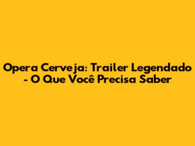 Opera Cerveja: Trailer Legendado - O Que Você Precisa Saber
