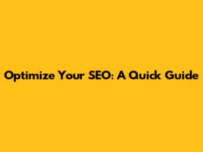 Optimize Your SEO: A Quick Guide