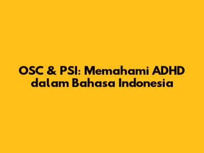 OSC & PSI: Memahami ADHD Dalam Bahasa Indonesia