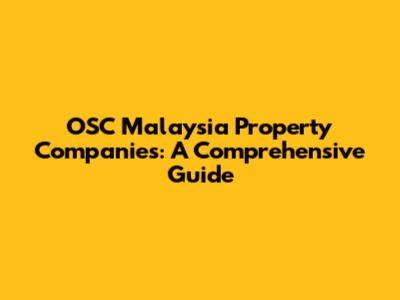 OSC Malaysia Property Companies: A Comprehensive Guide