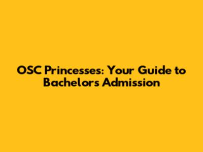 OSC Princesses: Your Guide To Bachelor's Admission