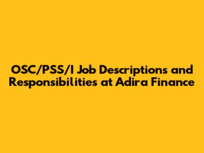 OSC/PSS/I Roles And Responsibilities At Adira Finance