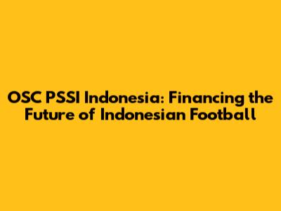 OSC PSSI Indonesia: Financing The Future Of Indonesian Football