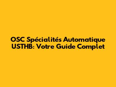 OSC Spécialités Automatique USTHB: Tout Ce Que Vous Devez Savoir