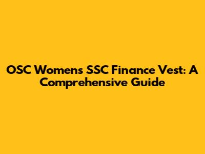 OSC Women's SSC Finance Vest: A Comprehensive Guide