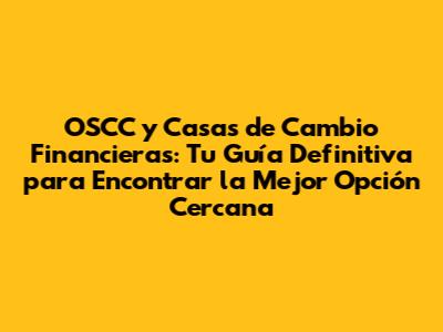 OSCC Y Casas De Cambio Financieras: Encuentra Las Mejores Opciones Cerca De Ti