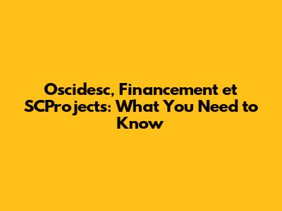 Oscidesc, Financement Et SCProjects: What You Need To Know