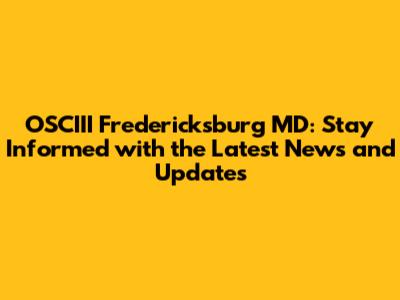 OSCIII Fredericksburg MD: Latest News And Updates